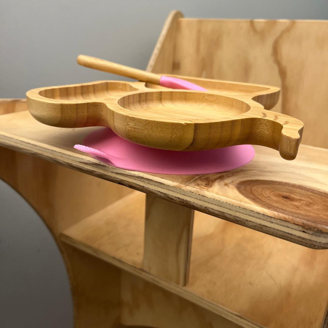 El Plato de Bambú con forma de elefante es ideal para acompañar a tu guagua en su transición hacia la alimentación sólida. Su diseño con tres compartimentos facilita servir comidas balanceadas y fomentar la autonomía con un toque de diversión.